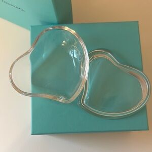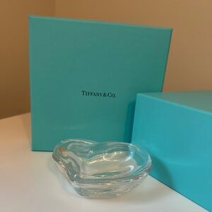 Elegant heart-shaped glass bowl by Tiffany & Co. Perfect for decor or gifting.
