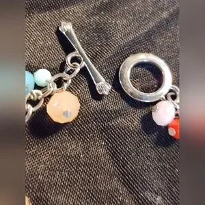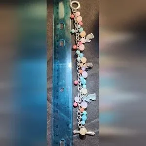 Add a touch of festive charm to your Easter celebrations with this delightful Pier 1 Imports bracelet. Adorned with beaded accents and Easter bunny rabbit charms, this multicolored toggle bracelet is a versatile accessory that complements any springtime look. The faceted stones catch the light, creating a subtle sparkle that accentuates the design. The bracelet measures 7.5 inches in length, ensuring a comfortable fit for most wrists. The dangle charms add a playful swing to the piece, while the chain and charm style offers a timeless appeal. Whether you're dressing up for a holiday event or adding a festive touch to your everyday wear, this bracelet is a charming addition to your jewelry collection.