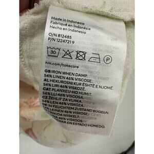 H&M Linen Top Women XL Button Front Deep V Puff Sleeves Boho Feminine