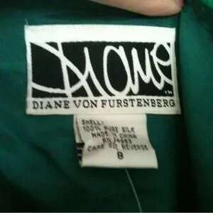 This stunning emerald green silk dress by Diane Von Furstenberg features a vibrant green hue that captures attention. Its chic and modern design is perfect for making a statement at any event. The dress offers a flattering silhouette that enhances your style effortlessly.
