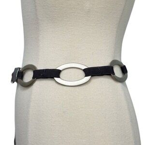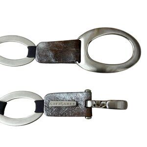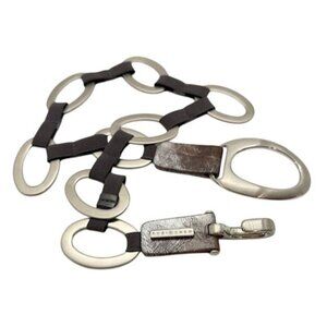 Suzi Roher Women's Stretch Chain Belt Silver Metal Brown Gray Silver Leather 34"