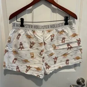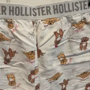 These Hollister women's shorts feature a playful Christmas dog print on a white background. Perfect for casual wear or pajamas they offer comfort and style. Size large. Good condition.
