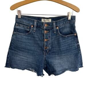Madewell High-Rise Denim Shorts Burke Wash Button-Front Cut Off Raw Hem Size 27