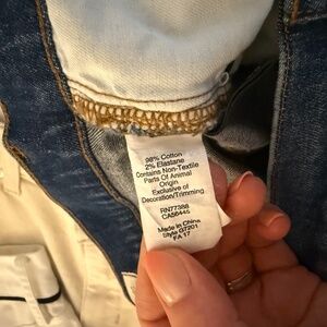 Slim boyfriend style cut, 98% cotton, embroidered flowers, raw hem. Good condition, as pictured.
