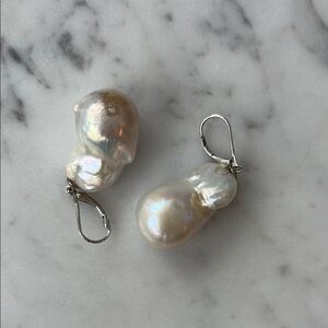 Reliquia natural "cocoon" pearl baroque drop earrings in real silver