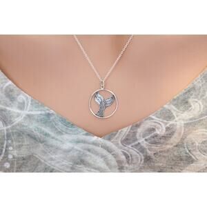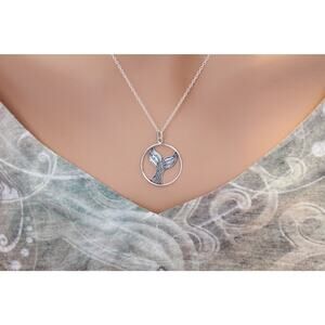 Sterling Silver Mermaid Tail Pendant Necklace, Mermaid Tail Circle Necklace