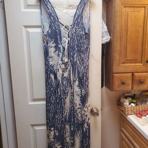 Blue and White Maxi Dress with Crisscross Back XL