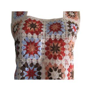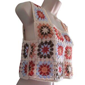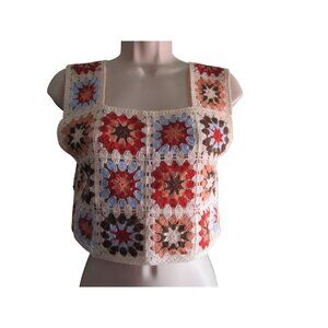 Vintage Handmade Crochet Granny Square Crop Top Womens S