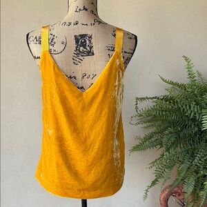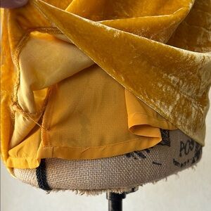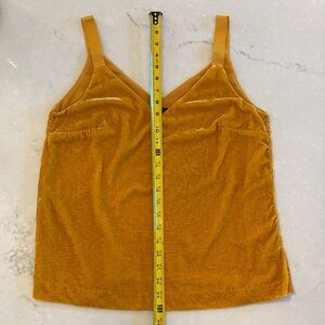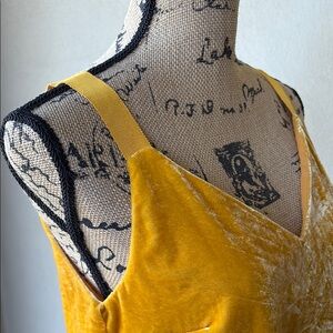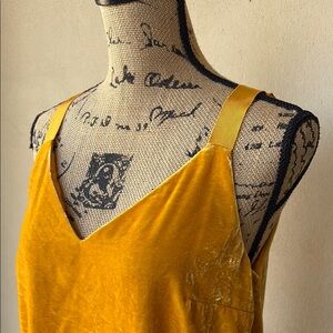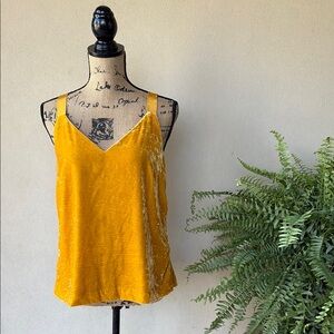 Sexy and chic, yellow/gold, velvet top made by J. Crew. Has v neck front and back, shoulder straps are ribbon. Can be dressed up or down. Fully lined. Perfect condition!