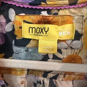 Anthropologie Maeve Moxy Collection Women's Linen Floral Button Front Blouse L