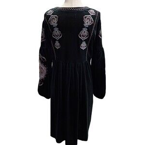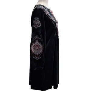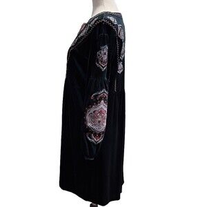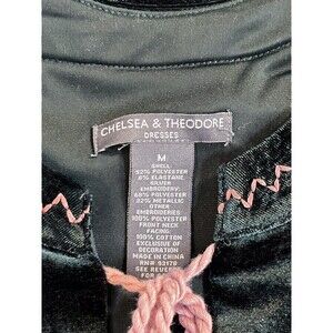 Chelsea & Theodore Shift Dress Womens Medium Green Velvet Embroidered Tassel