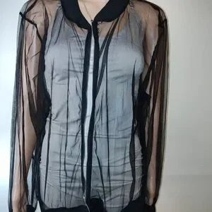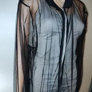 Stylish sheer bomber jacket in black. Perfect for layering.
