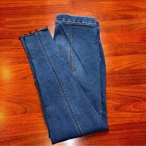 Free People High Rise Skinny Pull On Seamed Jeans Medium Wash Raw Hem W28