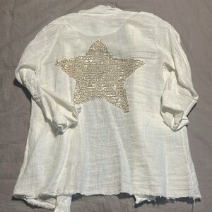 Venti 6 white linen embellished blazer - EUC