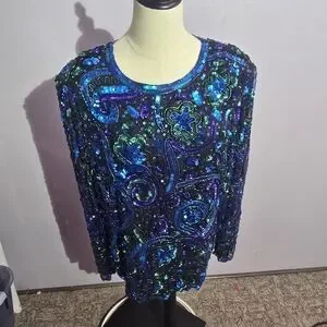 Vintage laurence kazar long sleeve sequin top plus size 1x