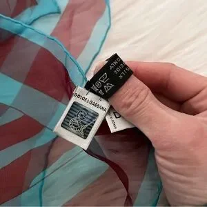 Vintage 100% silk Dolce & Gabbana scarf. Blue and red animal stripe pattern. A little light wear. A rare find. About 18.5” x 18.5”
