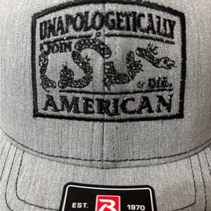 Richardson Gray and Black Trucker Hat “Unapologetically Join or Die American”