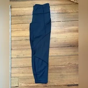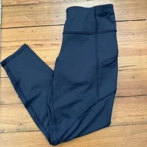 Sleek Athleta Navy Leggings. Breathable mesh down the sides of the legs. Pockets. 7/8 Length.