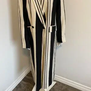 Women's Long Black and Cream Duster Coat - Could be worn as a dress -Activewear