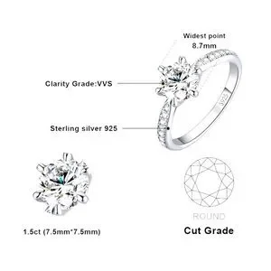 Classic 1.5 CT Moissanite Solitaire Engagement Promise 925 Sterling Silvβ¦