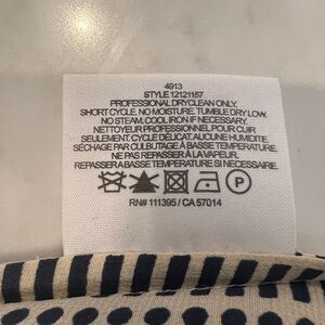 Stylish navy and white button-up blouse. Features a classic collar and long sleeves. Classy piece to dress up or down. Like new.