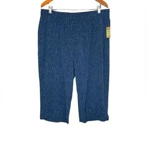 Title Nine Slaycation 2.0 Cropped Pants Kiyoshi Petite Midnight Print Blue NWT
