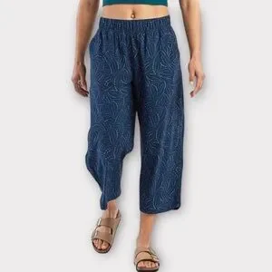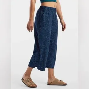 Title Nine Slaycation 2.0 Cropped Pants Kiyoshi Petite. In the print Midnight Print. A dark blue shade. Pull on. Elastic waist. Quick drying. Pockets.