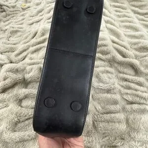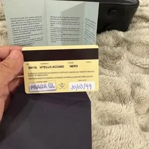 Authentic Prada shoulder bag, style B8116, crafted in black Vitello Acciaio leather. Features silver-tone hardware, wide adjustable strap, and “PRADA” logo lining throughout the interior. Includes original authenticity cards. Gently used with some exterior patina and light wear.