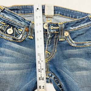 True Religion Joey Super Flared Jeans Women 27W x 30L Twisted Seam Thick Stitch