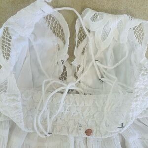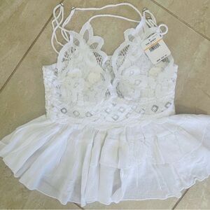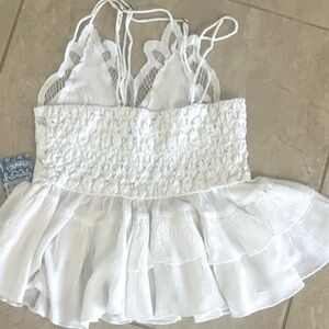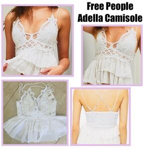 Free People Adella Camisole. Boho-chic romance is yours in this camisole with a lacy plunge neck and flowy, tiered ruffles at the hem.