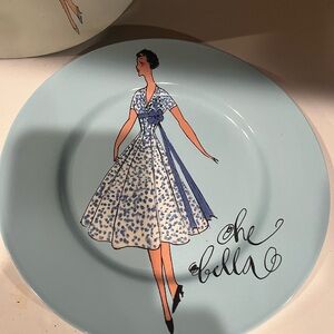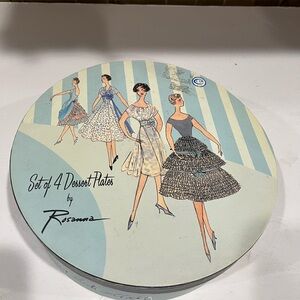 Vintage Rosanna Dessert Plates-new in box-set of 4-women in dresses-Blue