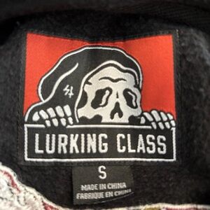Lurking Class Cropped Hoodie Black Embroidered Top Small S Sweatshirt Pullover