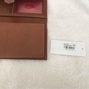Dooney & Bourke canvas leather trim bifold wallet. Gold tone hardware. Outside zipper compartment. Excellent condition. Please check all photos for measurements and condition.