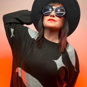 DISTURBIA / Black & Gray Sweater Dress / Moon & Stars / XL-XXL