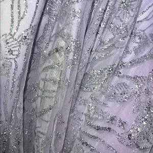 Elegant Pastel Purple Ballgown with Sheer Details, corset waist, silver glitter