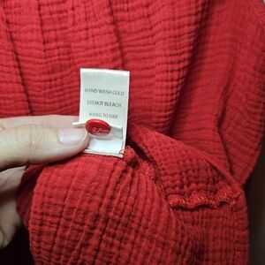 This stylish sleeveless red top is perfect for any occasion. The vibrant color adds a pop to your wardrobe. Ideal for pairing with jeans or skirts. In very good condition, size says S but fits like a M