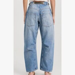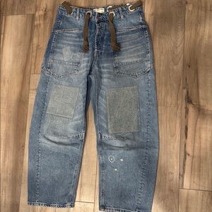 Free People Moxie Barrel Leg Blue Patchwork Jeans