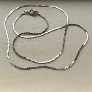 NWOT Vintage 15” STG SILVER solid flat serpentine chain