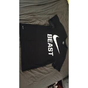 Stay comfortable and stylish with the Nike Dri-FIT Men's Graphic T-Shirt. This black tee features a bold 'BEAST' graphic printed on the front, showcasing your fierce attitude. Made with Dri-FIT technology, it ensures moisture-wicking comfort ideal for workouts or casual wear. The athletic cut provides a streamlined fit, perfect for any occasion.