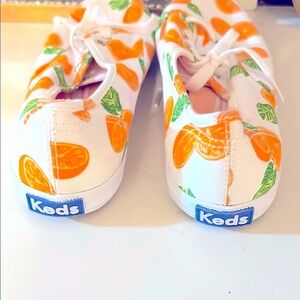 Brighten up your wardrobe with these Keds sneakers featuring a vibrant orange print. Perfect for playful days.