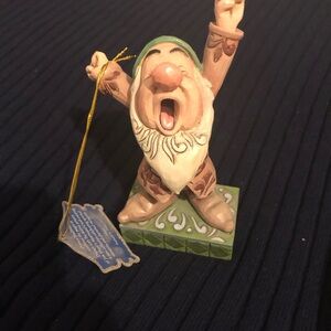 Charming “Sleepy” dwarf from Jim Shore’s Disney Snow White collection figurine with intricate details. Features a green base and colorful accents.