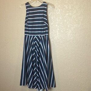 Eliza J Chevron Blue Stripe Fit And Flare Dress with pockets size 8