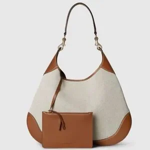 Introducing the Gucci B, which draws inspiration from a 1950s archival style. This shoulder bag, embodying the essence of its mid-20th century design origins, is crafted from natural canvas which drapes on the body.