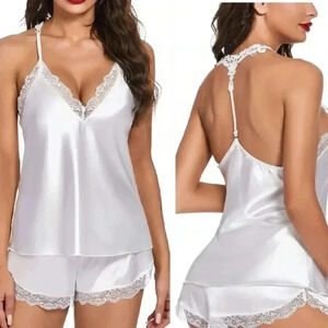 Avidlove White Satin Pajama Cami Set Sexy Lingerie Silky Sleepwear Size XXL