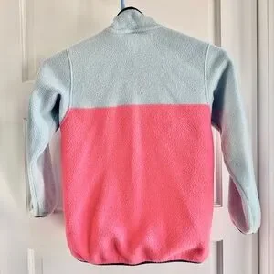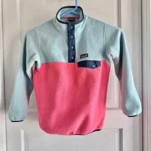 Patagonia Girls S (7-8) Lightweight Synchilla Snap-T Pullover Range Pink - Old. Good used condition with tons more life left. Ready for a new home! Color is light blue/bright salmon pink.