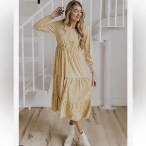 Roolee | Yellow/Tan Tiered Dress | Purple Floral Print