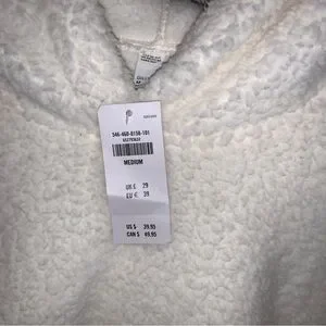 Wrap yourself in cozy comfort with the GILLY HICKS Ivory Sherpa Fleece hoodie. This juniors' hoodie, in a relaxed fit, is perfect for those crisp fall days. The soft, fuzzy material and hooded design offer warmth and style, while the ribbed cuffs and long sleeves provide a snug fit. Its short length and solid pattern make it versatile for casual outings, whether you're heading to a coffee date or a weekend stroll. LAST PHOTO IS NOT ME FOUND ON GOGGLE NEVER BEEN WORN!