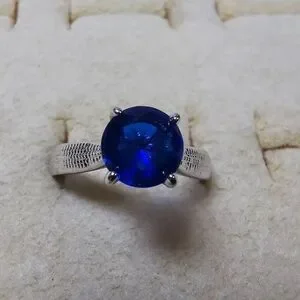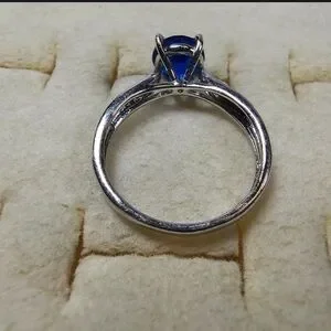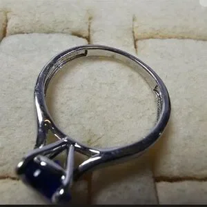 BEAUTIFUL VINTAGE SILVER TONE BLUE RHINESTONE RING SIZE 8
