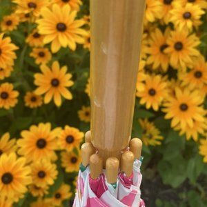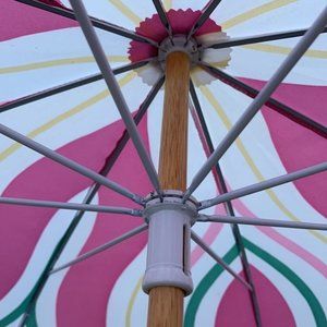 Vintage Oscar de la Renta Wooden Umbrella Pink and Green Swirls