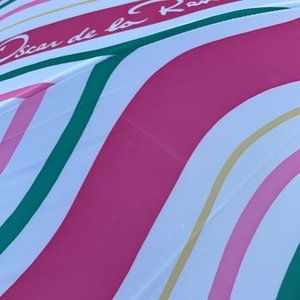 Beautiful colors: magenta, Kelly green, light pink, gold & white swirl pattern w/ Oscar de la Renta logo in white